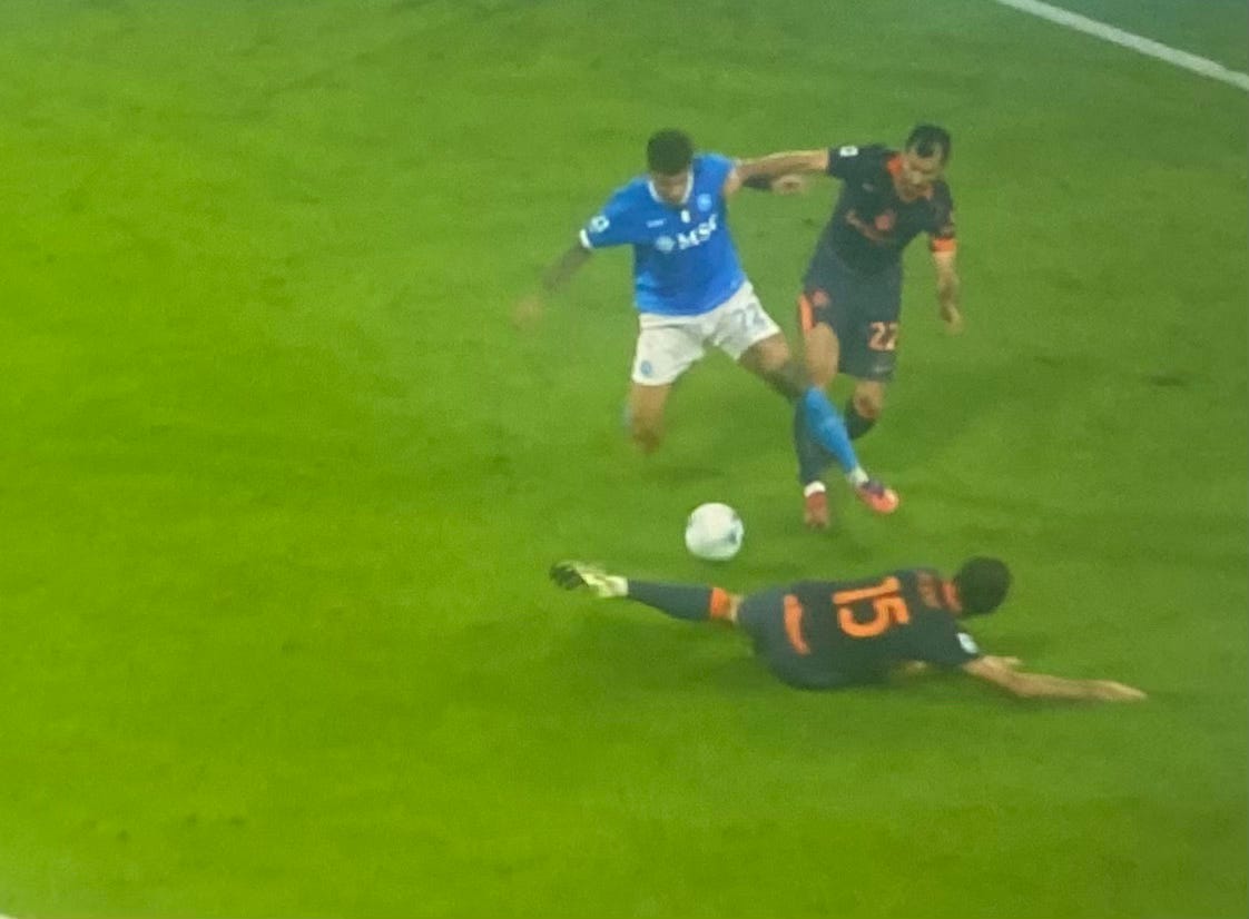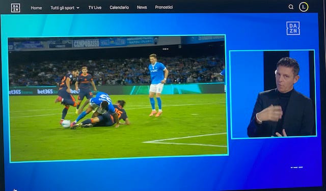 E soprattutto ci sarebbero state risparmiate le parole uitspraak dall’arbitro addetto al VAR che per giustificare il ridicolo rigore concessie per l’inistente fallo di Mkhitaryan su Di Lorenzo, dice testualmente: “Het kan niet zo zijn dat er een contact is en dat het niet mogelijk is om contact te maken met de intensiteit en dat het niet mogelijk is om zeker te zijn… lui is alleen de bescherming van de pallone. Allora Maurizio is Valerio, de strengheid en de val van de val” Mkhitaryan. Als dicono dat Lorenzo de gamba toestaat, niet de gamba beschermt tegen de pallone”.